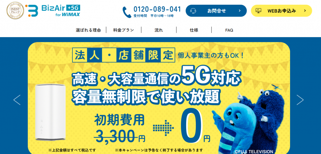 BizAirは、法人向けに設計された置き型Wi-Fi(ホームルーター)です。