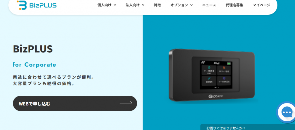BizPLUSは、法人専用に設計された持ち運びWi-Fiです。
