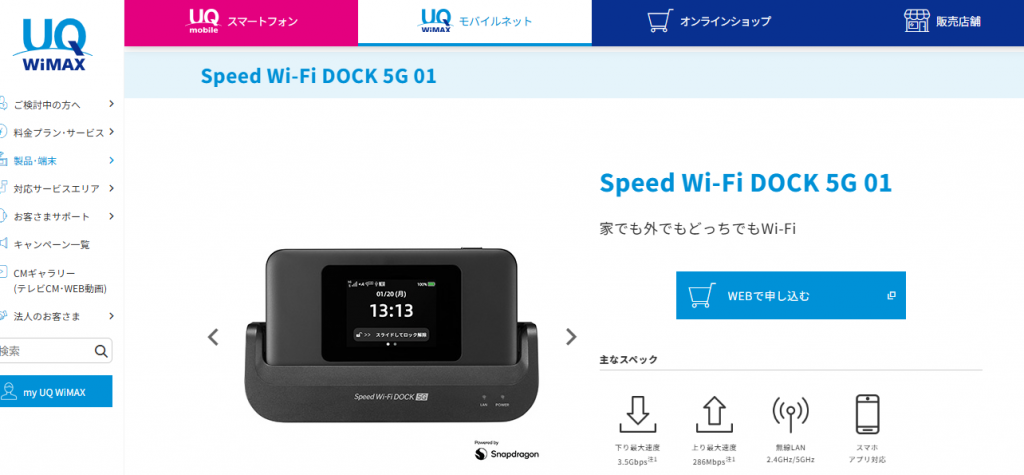 UQ WiMAX約4,000〜4,800円下り最大2.7Gbps(5G)事務手数料3,300円2〜3年容量無制限プランあり、全国展開で安定感