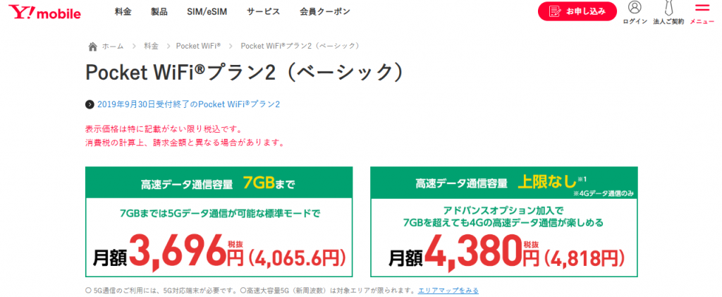 Y!mobile Pocket WiFi約3,800〜4,500円下り最大988Mbps事務手数料3,300円2年コスト重視の法人向け、小規模事業者に最適