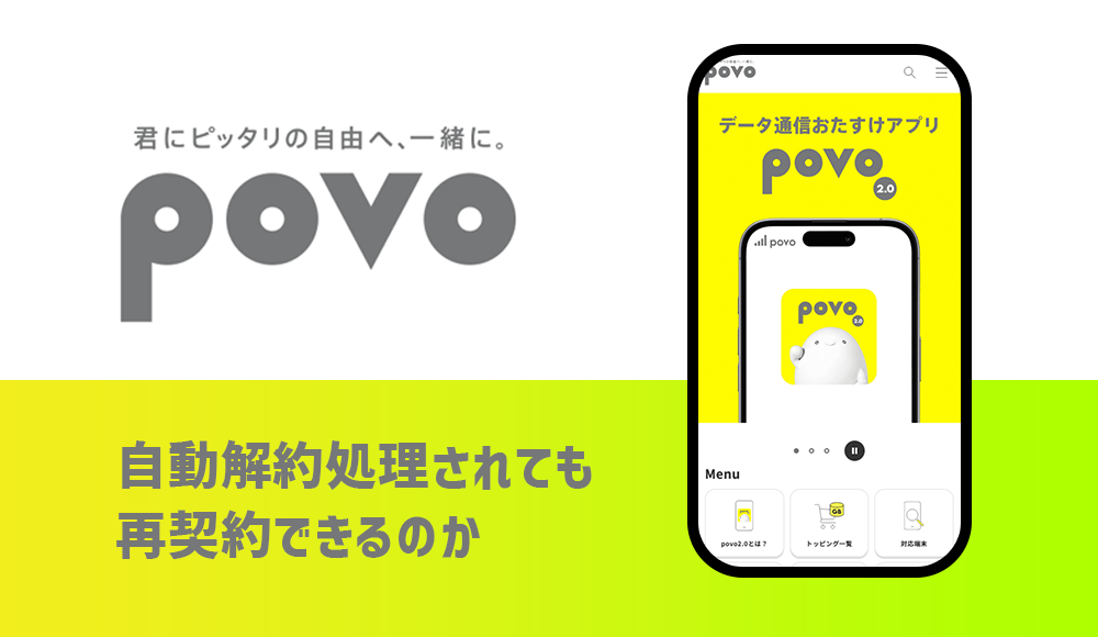 povoは自動解約処理後の再契約が可能。やり方と注意点を解説。