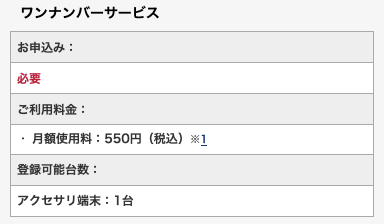 ワンナンバーサービスのオプション料金は月額550円