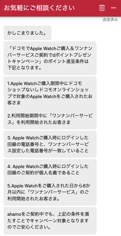 - ahamoユーザーがドコモでApple Watch購入+6ヶ月以内のワンナンバー加入で6,600ポイント還元