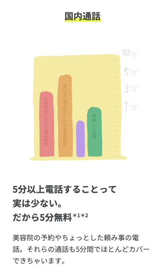 | 1回5分間通話無料 | iPhoneとApple Watch どちらで電話を掛けても5分無料 |