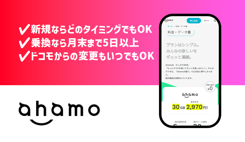 ahamoの契約やMNP乗り換えに向いたタイミングを解説