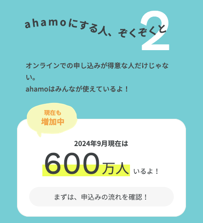 ahamoはプラン料金が月額3千円以下で使えるドコモの料金プランとして、600万人以上のユーザーに親しまれています。
