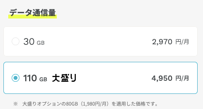 申込日から適用の場合、月の途中から適用すると1,980円の料金でデータ容量が80GB増加するメリットを最大限活かせません。