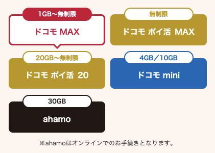 | サービス | ahamo | ドコモ mini | ドコモ MAX |
