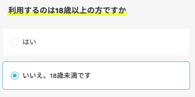 利用者の確認画面で、いいえ(18歳未満の子ども等が利用する)を選択すると、契約者の情報と利用者の情報をそれぞれ入力することができます。