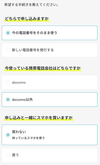ahamoは有人スタッフを介さないセルフ契約方式なので、家族全員で契約する場合の申込方法が少々わかりづらいです。