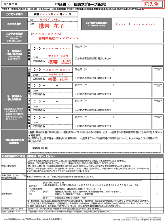 ahamoを契約後に「一括請求申込書」を提出すれば支払い名義をまとめることが可能
