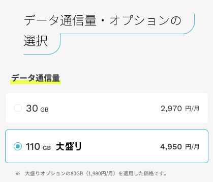 | ahamo大盛りオプション | 110GB