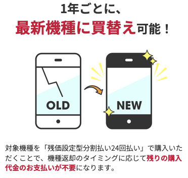 いつでもカエドキプログラム+は、いつでもカエドキプログラムよりも早いサイクルでスマホを最新機種に買い替えたい方向けのプログラムです。