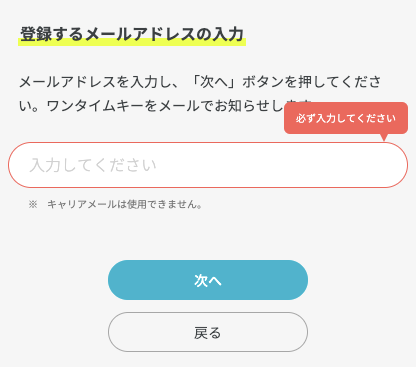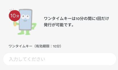 3.メールアドレス宛に届いたワンタイムキーを入力