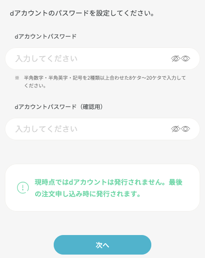 4.dアカウントのログインに使用するパスワードを設定