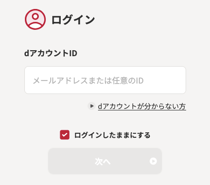 dアカウントIDを入力し、認証アプリ等の認証方法でログインを行い、申し込みを進めてください。