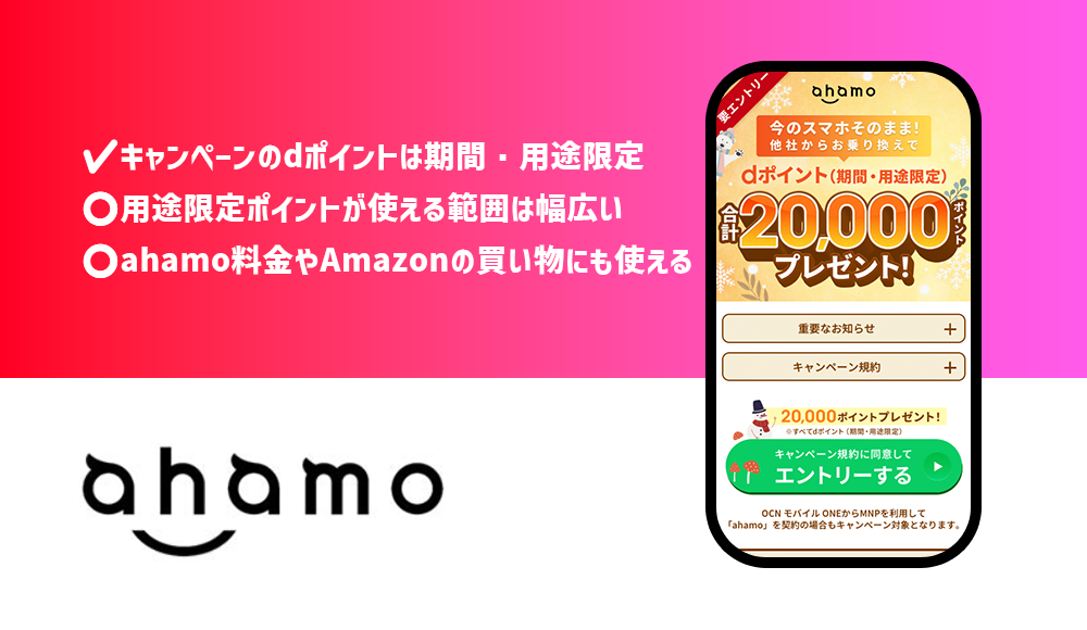 ahamoにSIMのみ乗り換えで貰える20,000ポイントは期間・用途限定