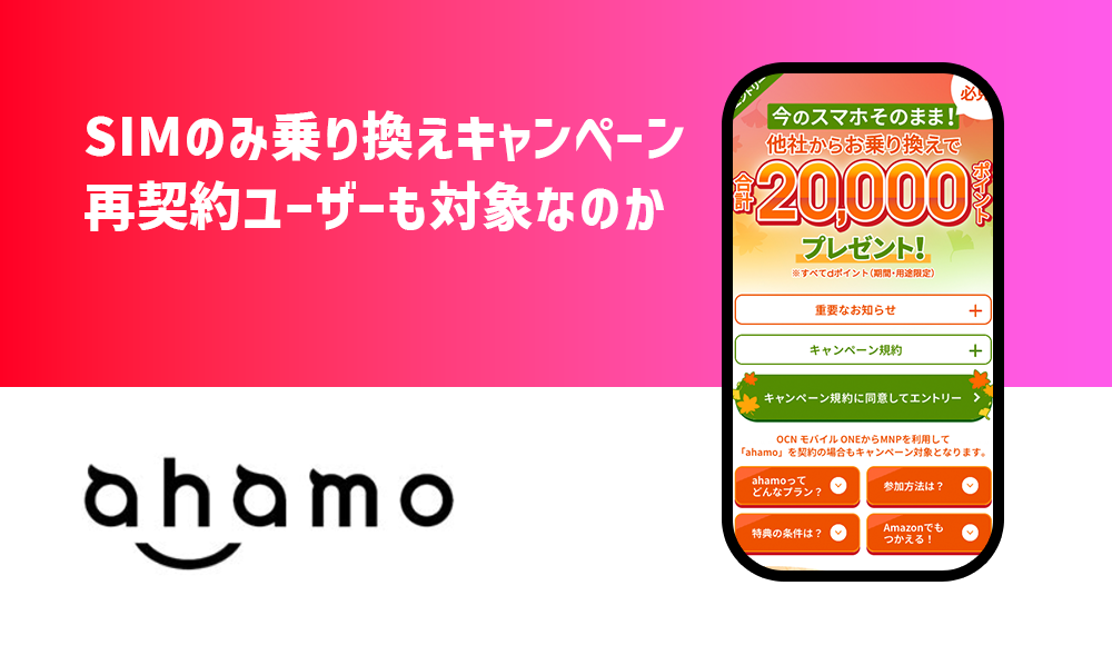 ahamoのMNP乗換で20,000ポイントキャンペーンは再契約ユーザーも対象?