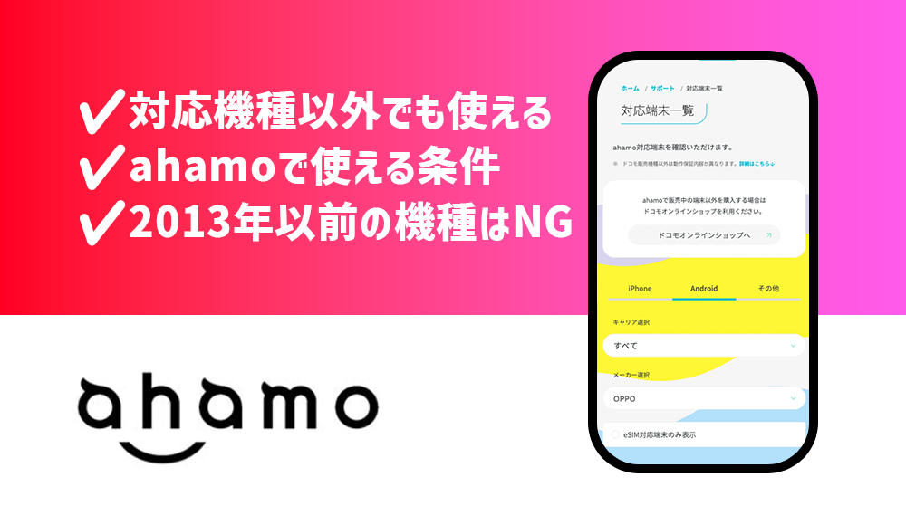 対応機種一覧に名前のない機種を持っている人は、ahamoを契約してはいけないのか?