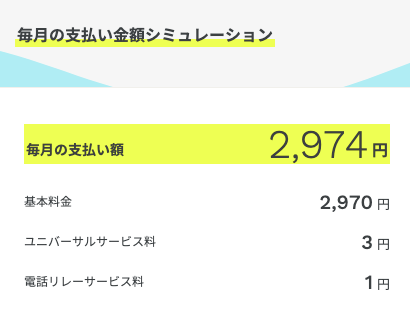 | 合計金額 | 2,974円 | 最低限の料金 |