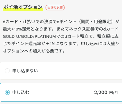 dポイントを貯める活動(通称ポイ活)を狙うユーザー向けのオプションです。