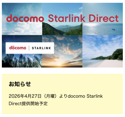 ドコモでスターリンクによる衛星通信サービスが2026年4月27日開始