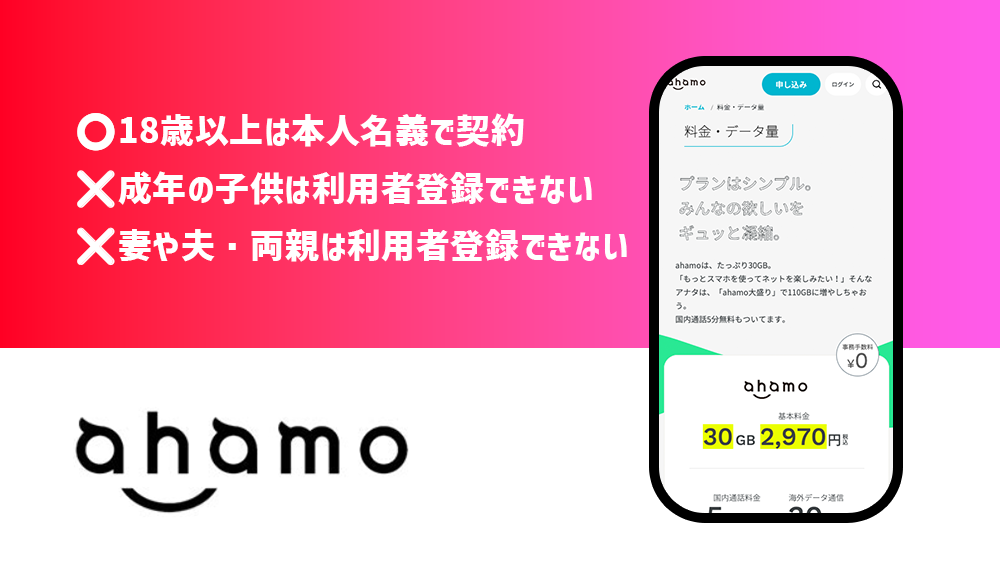 ahamoでは成年(18歳以上)の子供は本人名義で契約する必要がある