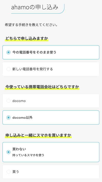 ahamoの契約は、画面上の案内を見ながら自分自身で進める必要があります。