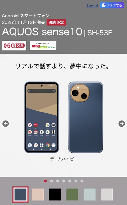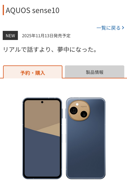 |  | 販売終了 | AQUOS sense10 販売中 |