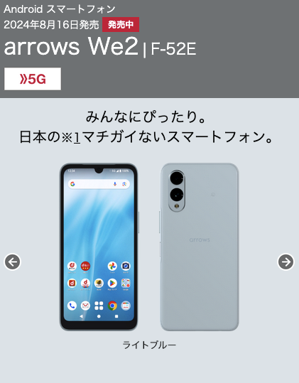 2024年8月16日にドコモでarrows We2がセットスマホとして発売されました。
