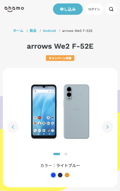 2024年8月16日にahamoでもarrows We2がセットスマホとして発売されました。