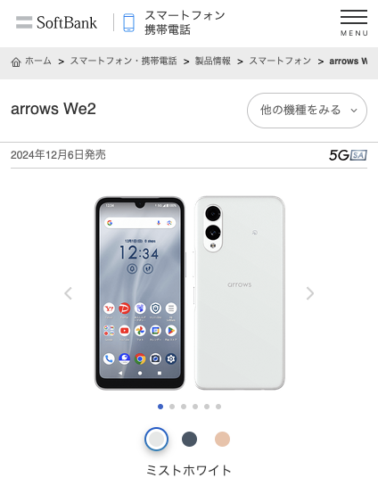 2024年12月6日にソフトバンクでarrows We2がセットスマホとして発売されました。