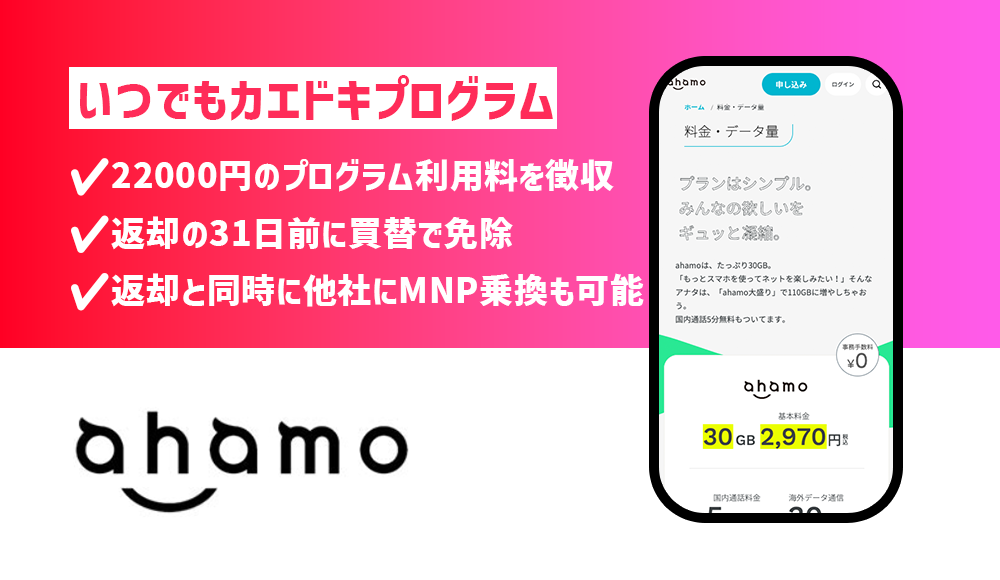 ahamoでも22000円のいつでもカエドキプログラム利用料を徴収。