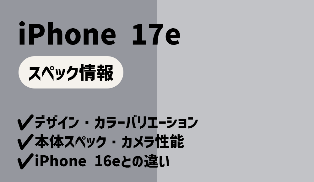 iPhone 17eに関するリーク情報が増加 最短で2026年2月にiPhone 17eが発売か 2025年2月28日に発売されたiPhone 16eが高いコストパフォーマンスで人気を集めています。 iPhone 16eは、iPhone SEシリーズと比べて古さ・廉価版っぽさを感じさせないデザインと... -
