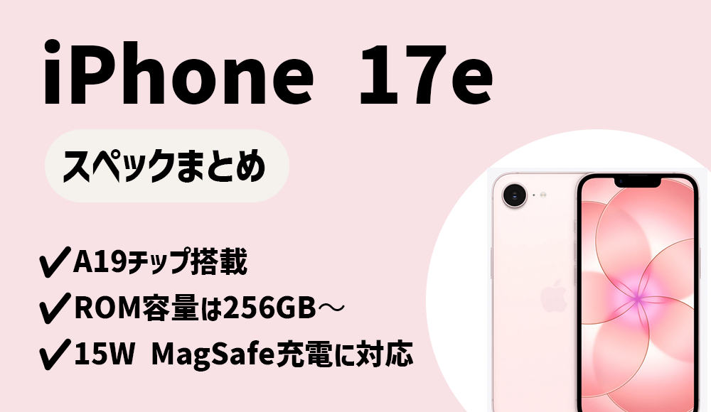 iPhone 17eの発表・発売日はいつ? iPhone 17eのスペック 本体スペック A19チップ搭載 8GBのRAM容量 256GB/512GBのROM容量から選べる(128GBは廃止) MagSafe充電+Qi2充電に対応最大15W) 6.1インチ/1,170 x 2,532pxの解像度のOLEDディスプレイ リフレッシュ... -