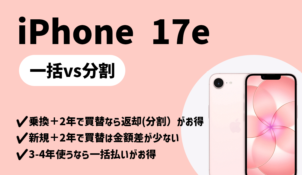 iPhone 17eは一括払いと分割払い(返却あり)のどっちがお得か。