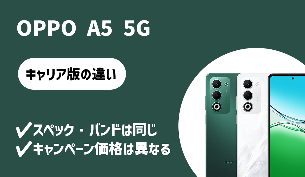 OPPO A5 5Gのキャリア版とSIMフリー版の違いを比較。
