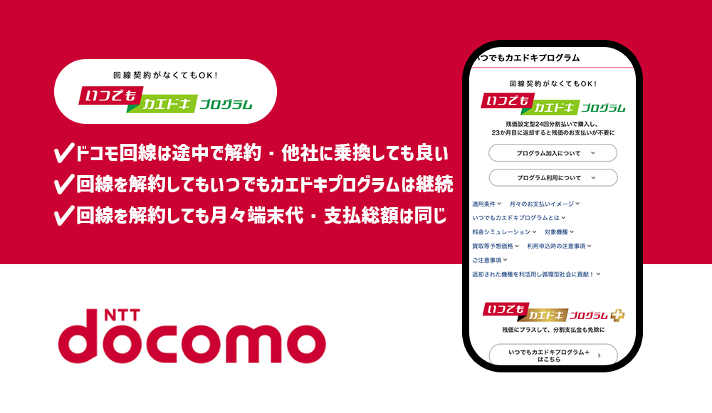 2026/3/5以降にドコモでいつでもカエドキプログラムを選択してスマホを購入すると、返却時に最大22,000円のプログラム利用料が徴収されるようになりました。