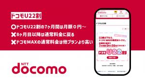 ドコモU22割は申し込み時に22歳以下なら利用可能な最大7ヶ月間割引されるキャンペーンです。
