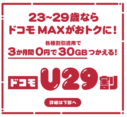 | ドコモU22割 ドコモ MAX (28-30GB) |