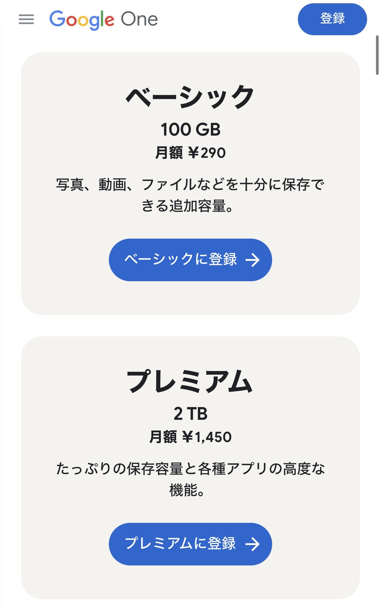 Google Driveは15GBまで無料で使えますが、有料プランに加入することでストレージ容量を拡張できます。