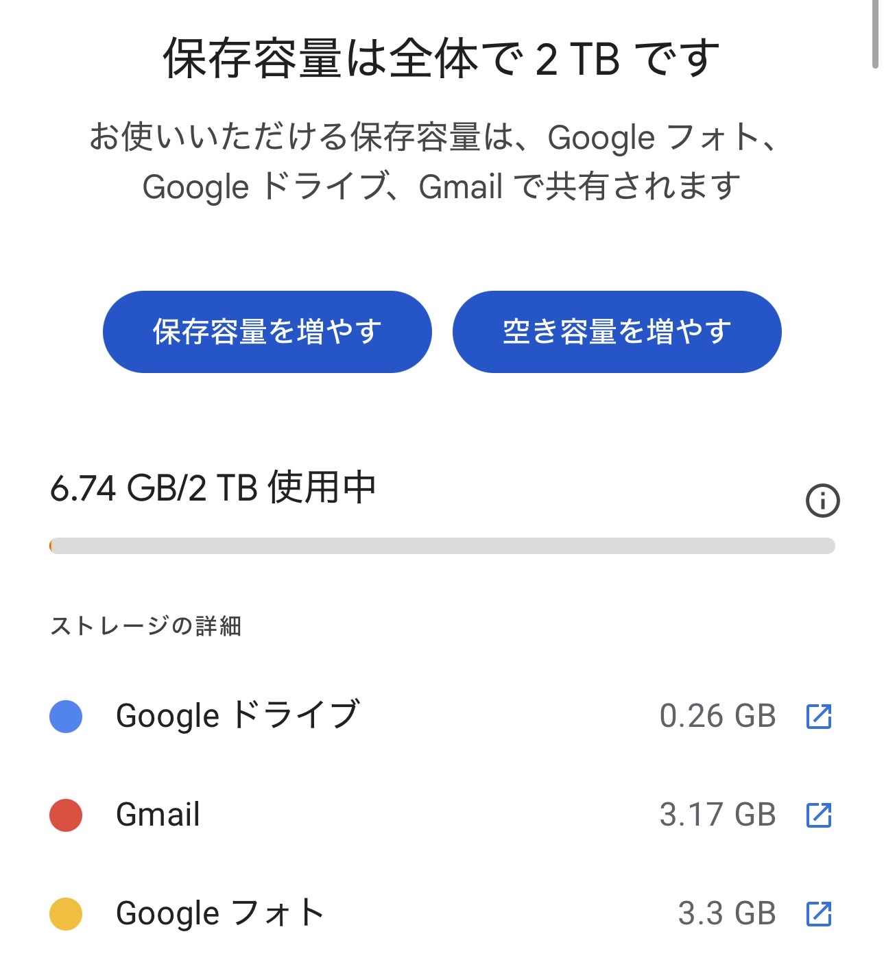 写真データが数千枚に及ぶ場合は、写真だけで100GB以上のストレージ容量を使用する場合もあります。