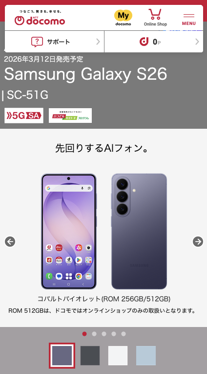 ドコモのGalaxy S26は2年返却で月額2,912円〜