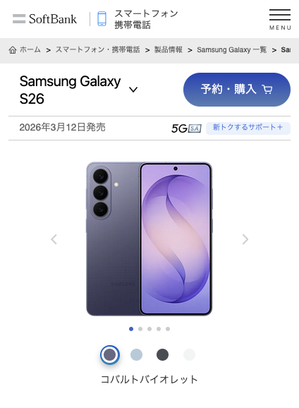 サムスン電子の人気スマートフォンの最新機種 Galaxy S26シリーズが、2026年2月26日に各キャリアで予約販売を開始、2026年3月12日に発売されます。