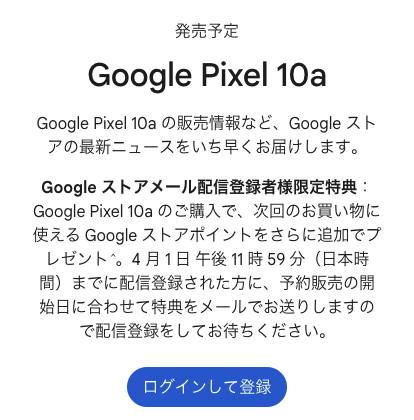 Google Pixel 10aが日本Apple Storeで74,800円〜?