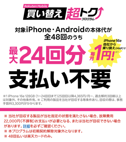 楽天モバイルのキャンペーン・買い替え超トクプログラムが使える
