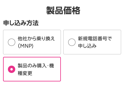 機種のみ購入の場合、一括払い以外の支払い方法は選べない。
