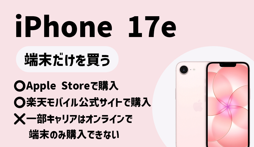 iPhone 17eは大手キャリア店舗でも端末のみ購入が可能です。