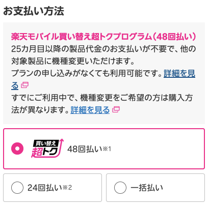 楽天カード以外のクレジットカードや、クレジットカードをお持ちでない方は楽天モバイルで2年返却の分割払いを利用できません。