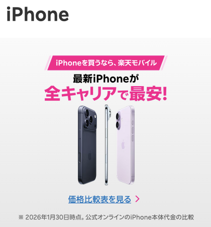 \ 楽天モバイルでiPhone 16eが最大40,000円相当お得 /